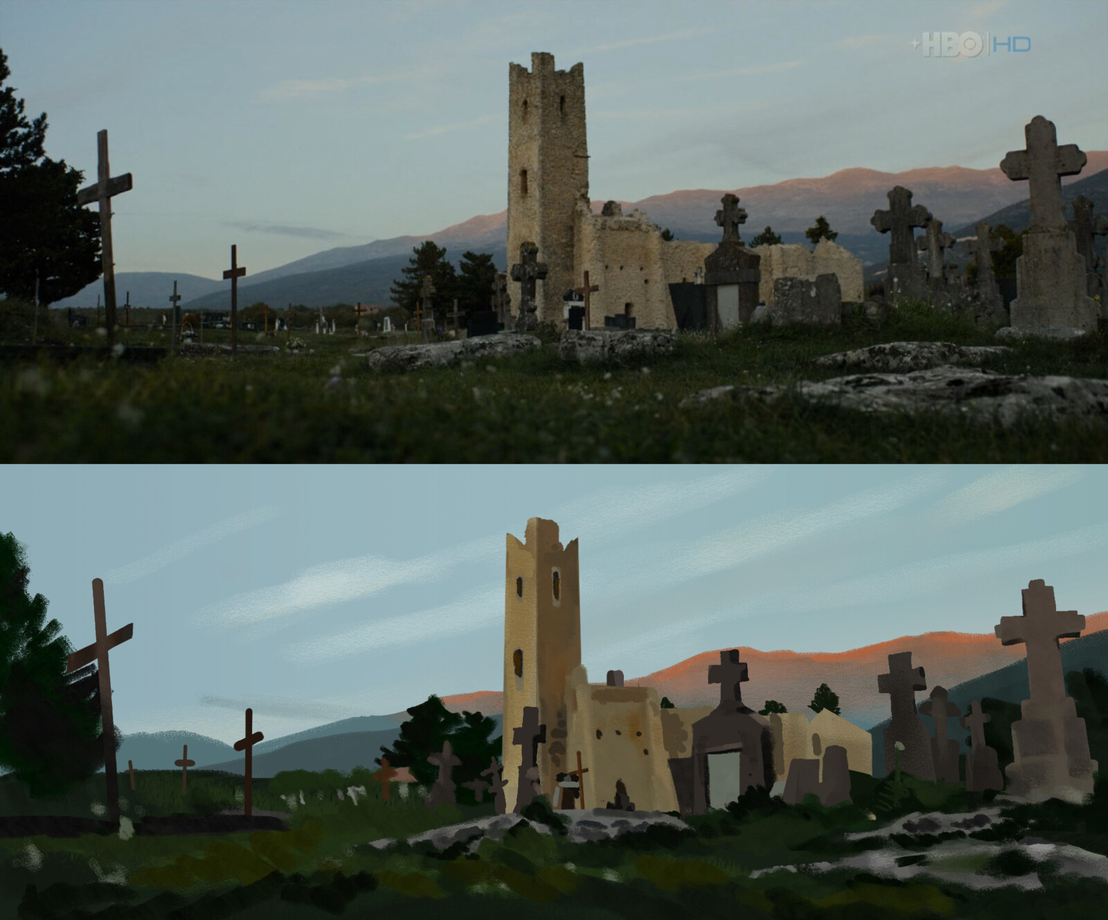 Photo copy assignment in Matte Painting course. One hour each. No color sampling.